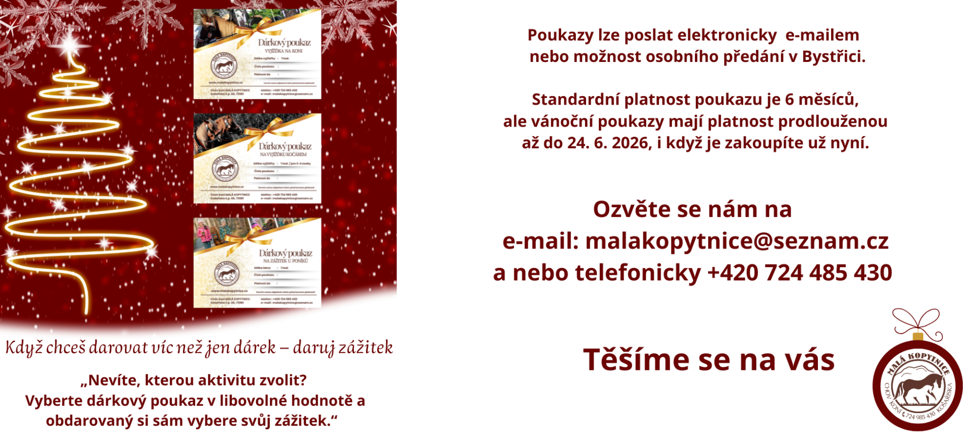 Darujte zážitek, na který se nezapomíná – vyjížďky na koni, kočár i kouzelné chvíle s poníky.